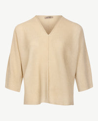 Gebreide, dunne damespullover met een raglanmouw en v-hals. Uitgevoerd in een mêlée garen van mokka met brons. Prachtige warme kleur die eigenlijk het hele jaar draagbaar is. Naadverwerking in de lengte over het midden aan de voor- en achterkant. Eenvoudig en stijlvol ontwerp. In de bekende kwaliteit van LeComte; soepel gebreid en heel zacht. De raglanmouw valt mooi lang. En deze pullover heeft splitjes aan de zijkanten voor een nonchalante, classy look.